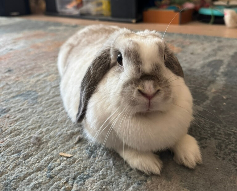 Robbie, short for Robertina, joined my household through a private rehoming. She has taught me so much about patience and how to tune into subtlety with her gentle bunny ways. Of course, she also has moments where she feels more like a dog in a bunny suit, hopping into the center of everything.